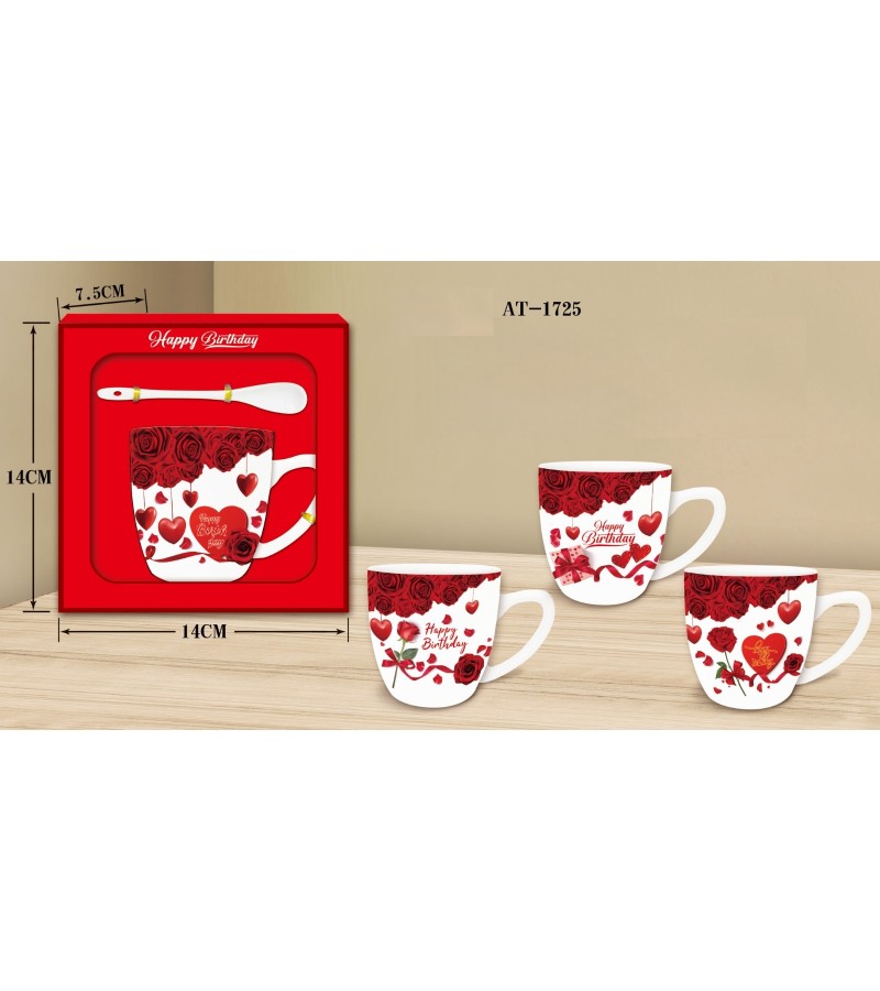 TEKLİ KALP MODELLİ ASETAT KUTULU KAŞIKLI KUPA