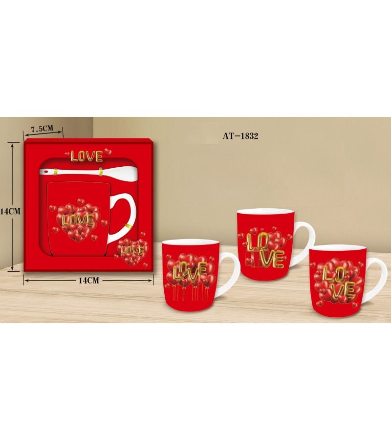 TEKLİ KALP MODELLİ ASETAT KUTULU KAŞIKLI KUPA
